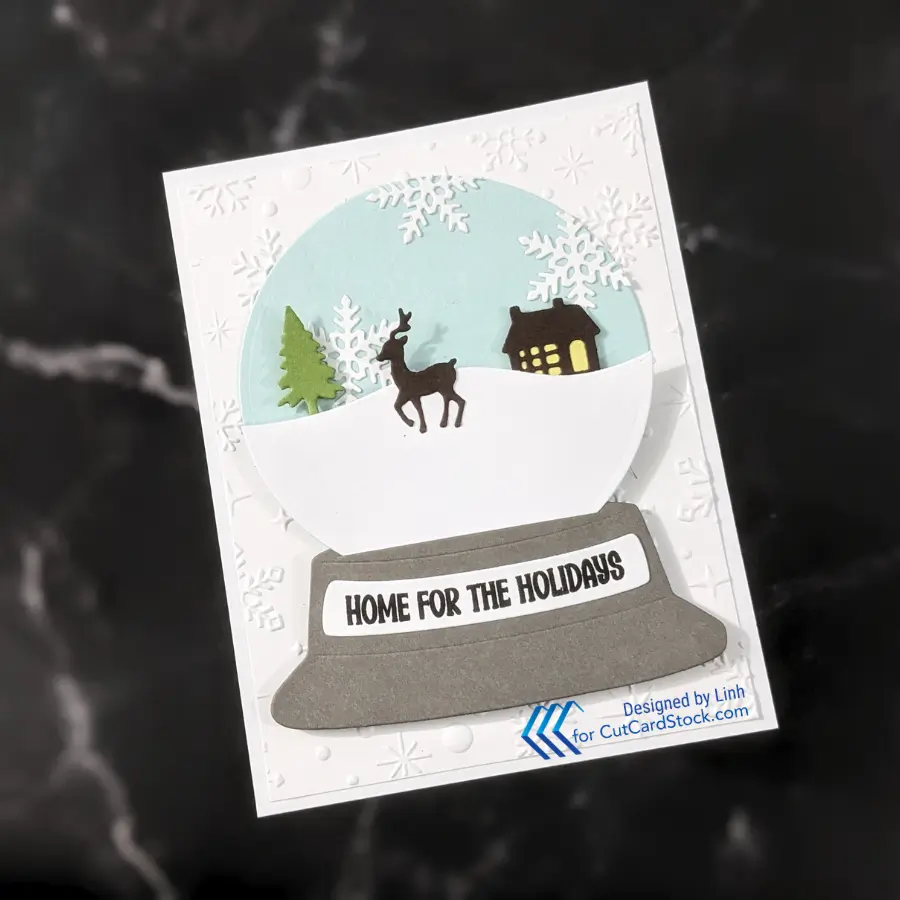Today I’m making a snow globe card and while the die set was designed to make shaker cards – I’m just going to make a dimensional layered Snowy Scene for my Snow Globe!